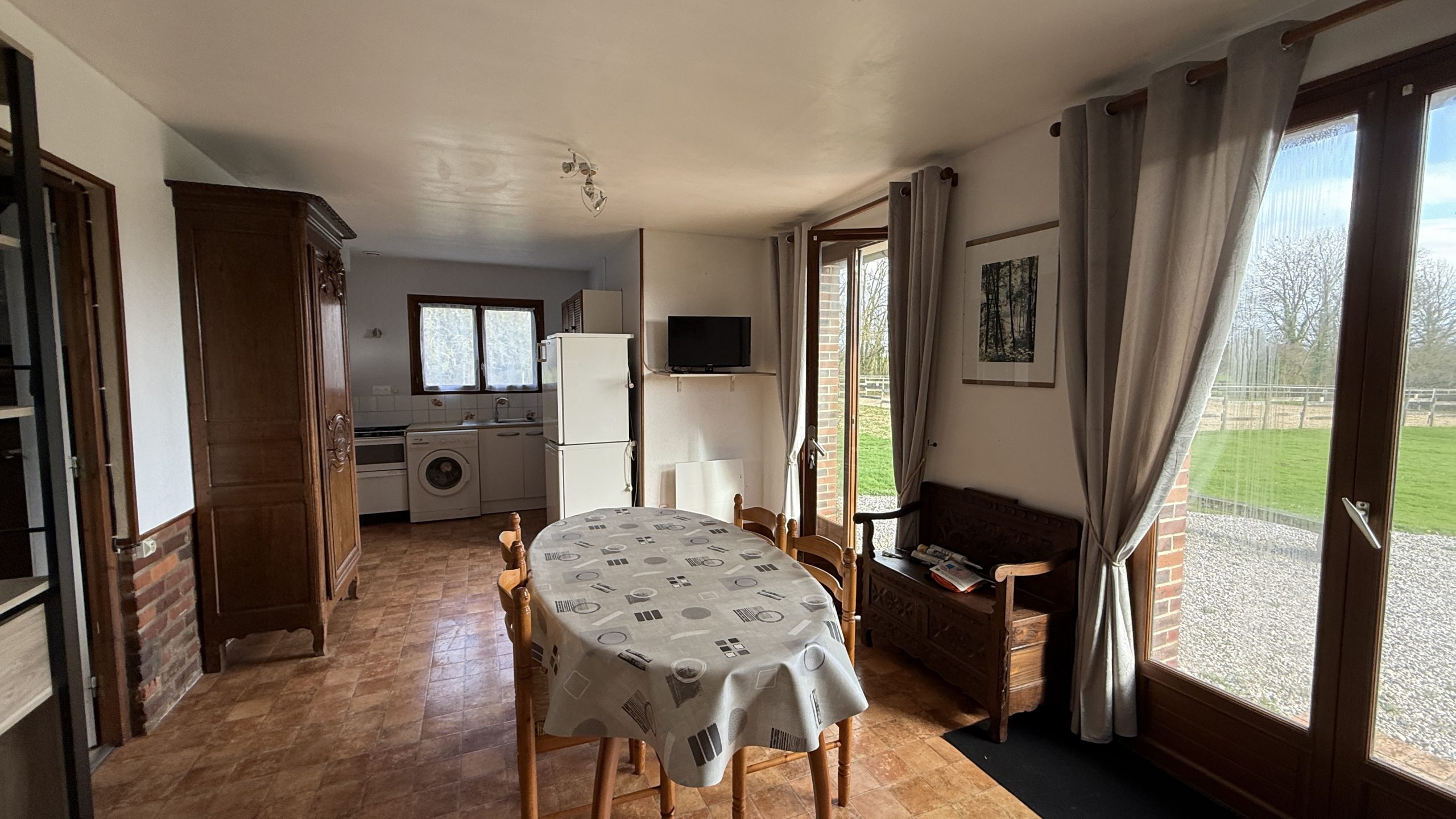 Proximité bourgs de Saint-Saëns, les Grandes-Ventes, Neufchâtel-en-Bray (15 minutes max en voiture), située dans belle propriété équestre, charmante maison meublée à la location surface habitable mesurée 39.66 m² comprenant une entrée sur salle-séjour poêle à bois, escape cuisine, 1 belle chambre, salle de douche et toilette. Jardin non-clos, stationnement pour un ou plusieurs véhicules. Loyer : 400 € mensuel. Dépôt de garantie : 400 € (caution encaissée). Libre de suite  ! Frais de bail-agence : 429 € ttc incluant 169 € au titre de la réalisation de l'état des lieux. Chauffage électrique par radiateurs. DPE E soit 277 kwh/m².an et émissions de GES 10 kg Co2.m².an. A découvrir !